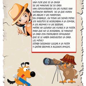 El detective Jimmy y vuestro hijo tendrán que investigar casos en los que todos son sospechosos, pero solo una persona es culpable. Deberán resolver los acertijos componer puzzle y palabras que les llevarán a descubrir y examinar las pistas (imágenes), estudiar con atención a las personas implicadas y al final sacar conclusiones de todo lo que han descubierto y encontrar al culpable.