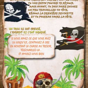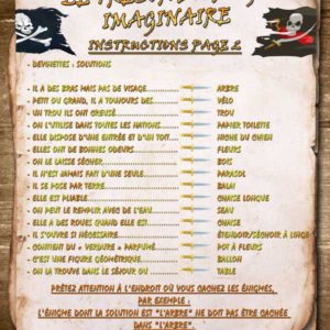 Votre enfant devra résoudre les énigmes, chercher des indices et reporter les solutions aux points indiqués sur la carte. Les premières lettres de chaque solution forment le mot qui l'amènera à la cachette du trésor.