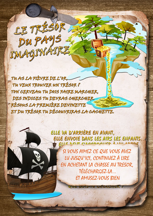 Chasse au tresor en plein air – au parc-jardin public – le trésor du pays imaginaire