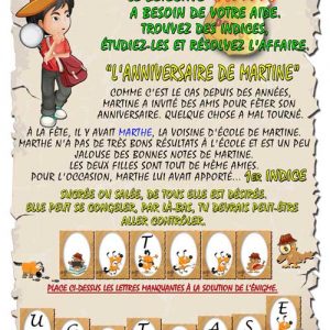 Tout cela à travers la lecture d'une histoire, d'énigmes simples et amusantes et d'images qui sont autant d'indices nécessaires pour résoudre l'affaire.
