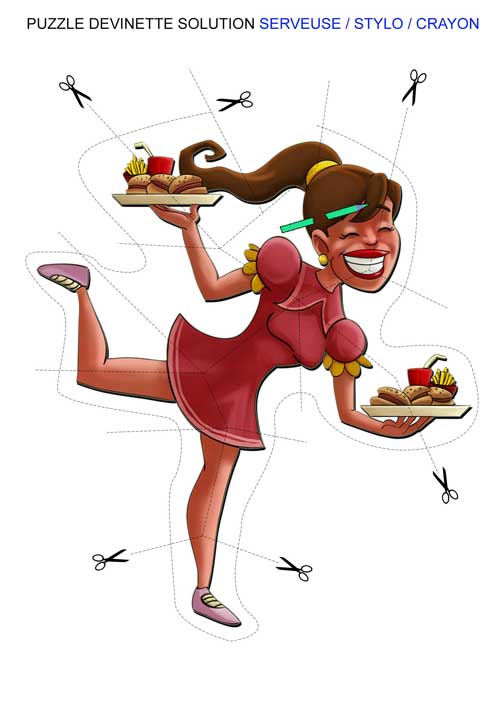 Devinettes : Vélo – Trou – Papier de toilette - Niche du chien - Fleurs - Bois - Parasol - Balai - Ballon – Chaise longue – Seau - Chaise - Table -Étendoir/sèche-linge - Arbre - Pot de fleurs