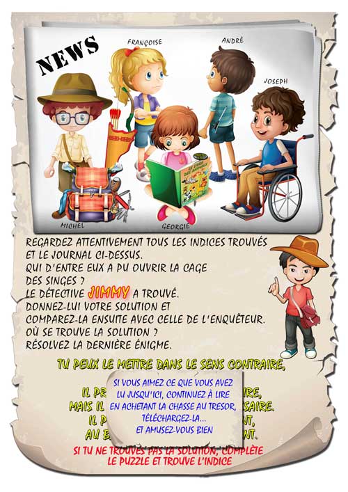 Pendant qu’une classe d’étudiants était en train de visiter le zoo de la ville, des douzaines de singes sont apparus parmi eux. quelqu’un les a libérés. Aide le détective à trouver de qui il s’agit.