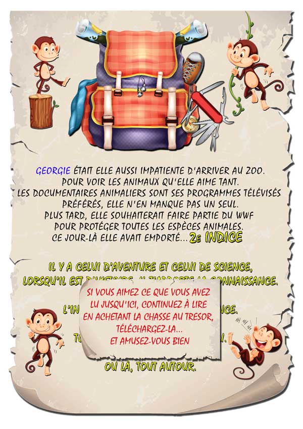 Pendant qu’une classe d’étudiants était en train de visiter le zoo de la ville, des douzaines de singes sont apparus parmi eux. quelqu’un les a libérés. Aide le détective à trouver de qui il s’agit.