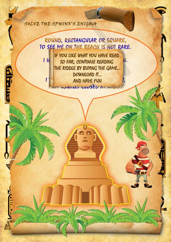 To please every parent that would like to organise an open air Treasure Hunt for their child, we have thought of the most common hiding places that can be found at the beach/garden or garden/home and included them in our treasure hunt riddles.