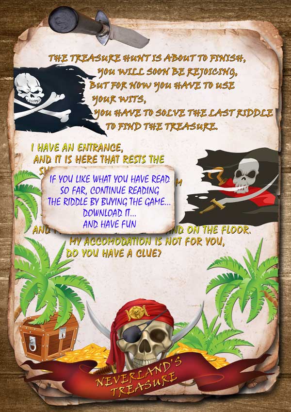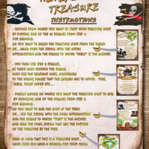 Your child will need to solve riddles, look for clues indoors or out in the garden and write down the answers in the specified points on the map.The first letters of each answer will make up the word that will lead them to the treasure.