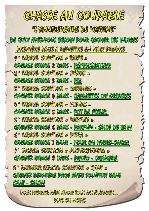 Chasse au coupable pour fille – l’anniversaire de Martine