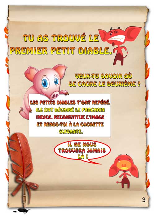 Version pour enfants 8-10 ans. Des petits diables ont caché un trésor. Votre enfant devra trouver ces petits diables à travers la résolution d’énigmes sympas et amusantes pour arriver au trésor.