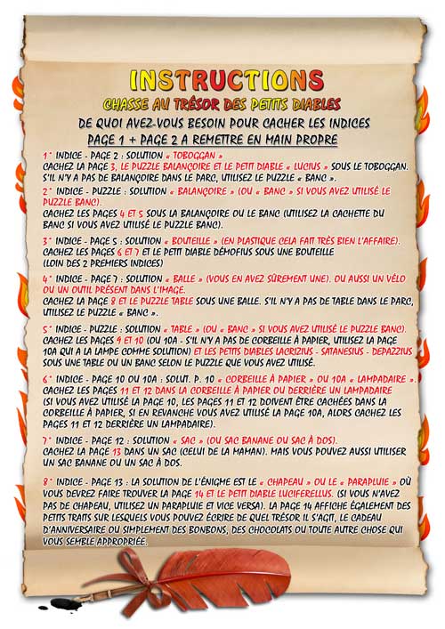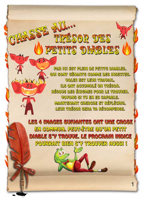 Version pour enfants 5 7 ans. Des petits diables ont caché un trésor. Votre enfant devra trouver ces petits diables à travers la résolution d’énigmes sympas et amusantes pour arriver au trésor.