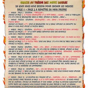 Toutes les chasses au trésor présentées ici comprennent des énigmes pour les cachettes les plus courantes au jardin ou jardin/maison ; afin de satisfaire tous les parents désireux d'organiser une chasse au trésor en plein air pour leur enfant.