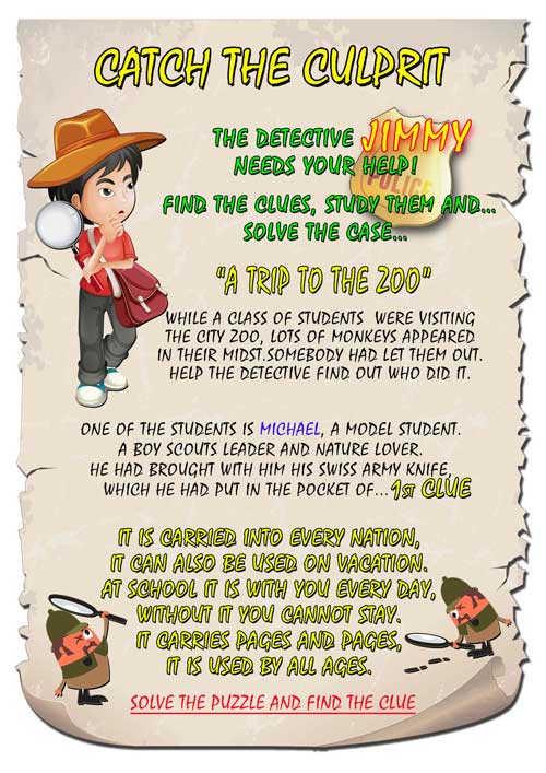Jimmy the detective and your child are asked to investigate a case in which everyone is a suspect but only one person is guilty. They have to solve riddles that will lead them to discover and examine clues (images), carefully study the people involved and finally draw conclusions from their discoveries to find the culprit.