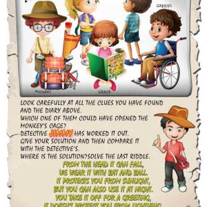 Maggy the detective and your child are asked to investigate a case in which everyone is a suspect but only one person is guilty. They have to solve riddles that will lead them to discover and examine clues (images), carefully study the people involved and finally draw conclusions from their discoveries to find the culprit.