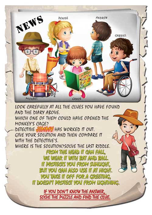 While a class of students were visiting the city zoo, lots of monkeys appeared in their midst. Somebody had let them out. Help the detective find out who did it.