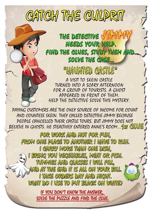 A visit to skein castle turned into a scary afternoon for a group of tourists. A ghost appeared in front of them. Help the detective solve this mystery.