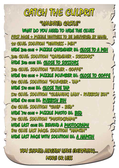 Treasure hunt with 2 maps for house/garden solution table/glass 11-12