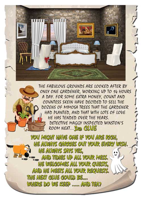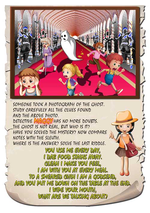 A visit to skein castle turned into a scary afternoon for a group of tourists. A ghost appeared in front of them. Help the detective solve this mystery.