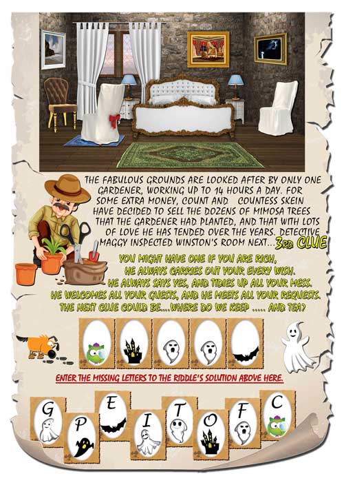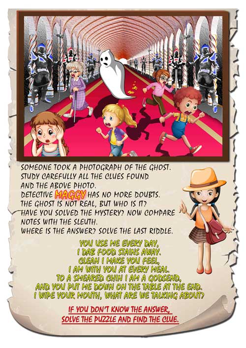 A visit to skein castle turned into a scary afternoon for a group of tourists. A ghost appeared in front of them. Help the detective solve this mystery.