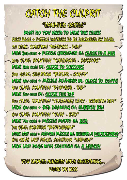 Treasure hunt with 2 maps for house/garden solution table/glass 11-12