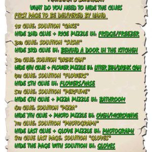 Treasure hunt with 2 maps for house/garden solution table/glass 8-10