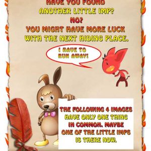The garden is overrun with little imps, they are as annoying as flies. Pilfering is their job, and they have now piled up an impressive hoard. Solve the riddles to find it/ them let's see if you can do it. Go and catch them all now it is time to search, and just think... their treasure will be your reward.