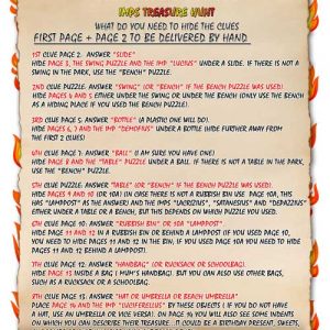 To please every parent that would like to organise an open air Treasure Hunt for their child, we have thought of the most common hiding places that can be found at the beach/garden or garden/home and included them in our treasure hunt riddles.