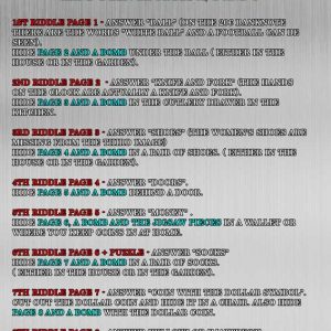 Version 11-13 years old. Your child is an awesome thief. He managed to find the release code for "Bank of Italy Vault". But once inside, the reinforced door slammed shut behind him. Because the outside release code is different from the inside one.....How can he escape? How can he enjoy his loot? That's easy.... by solving the riddles he will figure out the new code's numbers. They are suitable for birthdays, parties and special occasions or simply to pass the time.