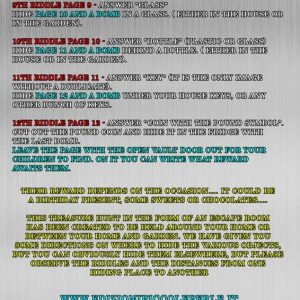 Version 8-10 years old. Your child is an awesome thief. He managed to find the release code for "Bank of Italy Vault". But once inside, the reinforced door slammed shut behind him. Because the outside release code is different from the inside one.....How can he escape? How can he enjoy his loot? That's easy.... by solving the riddles he will figure out the new code's numbers. They are suitable for birthdays, parties and special occasions or simply to pass the time.