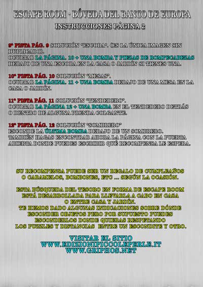 Tu hijo es un ladrón formidable. Porque ha logrado encontrar el código para abrir la "Bóveda del Banco de Italia". Pero una vez entrado, la puerta de seguridad se ha cerrado detrás de él. Dado que el código de apertura externo es diferente al interno ... ¿Cómo salir ahora? ¿Cómo disfrutar del botín? Simplemente resolviendo los acertijos que llevarán a encontrar los números del nuevo código.