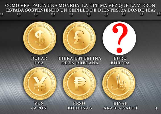 Acertijos/enigma: pelota - cuchillo y tenedor - zapatos - puerta - euro - calcetines - moneda - almohada - bolsa - botella - llave
