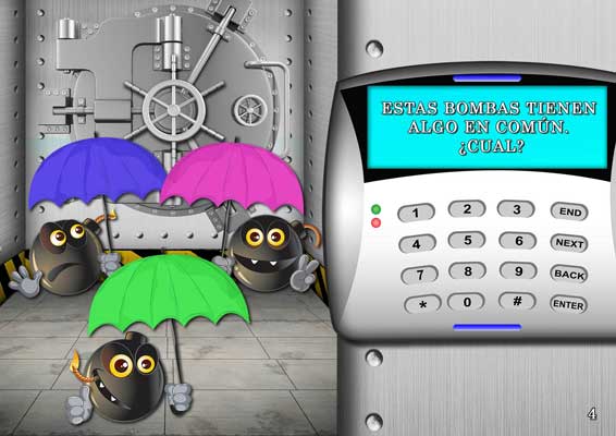 Tu hijo es un ladrón formidable. Porque ha logrado encontrar el código para abrir la “Bóveda del Banco de Europa”. Pero una vez entrado, la puerta de seguridad se ha cerrado detrás de él. Dado que el código de apertura externo es diferente al interno … ¿Cómo salir ahora? ¿Cómo disfrutar del botín? Simplemente resolviendo los acertijos que lo llevarán a encontrar bonitas imágenes de emoticonos de bombas para volar la cerradura de la puerta de la bóveda.
