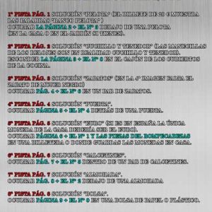 Acertijos/enigma: pelota – cuchillo y tenedor – zapatos – puerta – euro – calcetines – pantalones – almohada – bolsa – botella – llave – tv