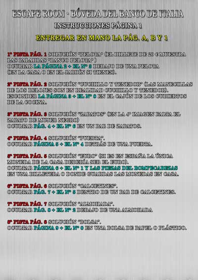 Tu hijo es un ladrón formidable. Porque ha logrado encontrar el código para abrir la “Bóveda del Banco de Italia”. Pero una vez entrado, la puerta de seguridad se ha cerrado detrás de él. Dado que el código de apertura externo es diferente al interno … ¿Cómo salir ahora? ¿Cómo disfrutar del botín? Simplemente resolviendo los acertijos que llevarán a encontrar los números del nuevo código.