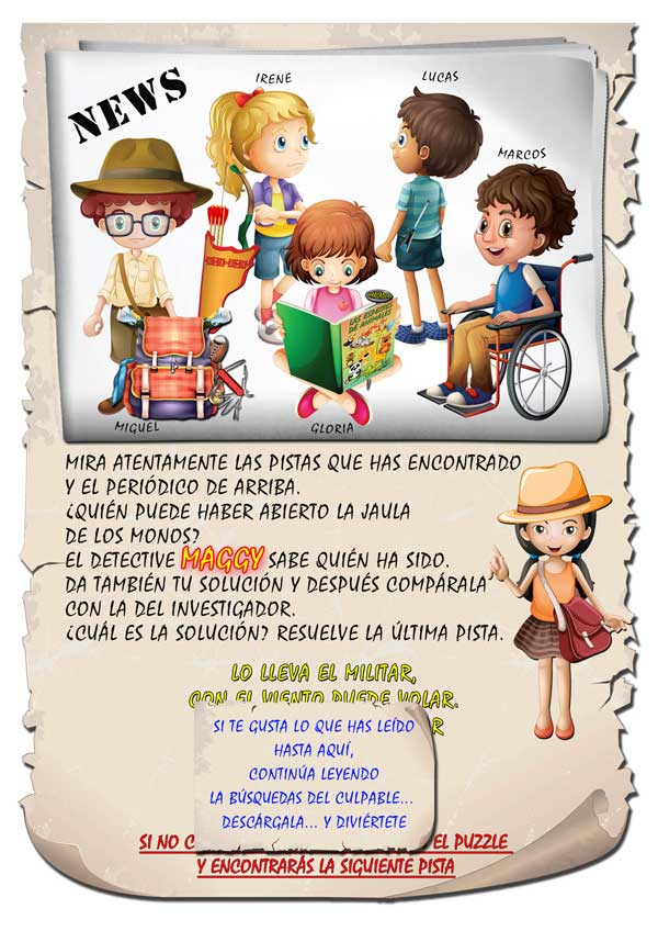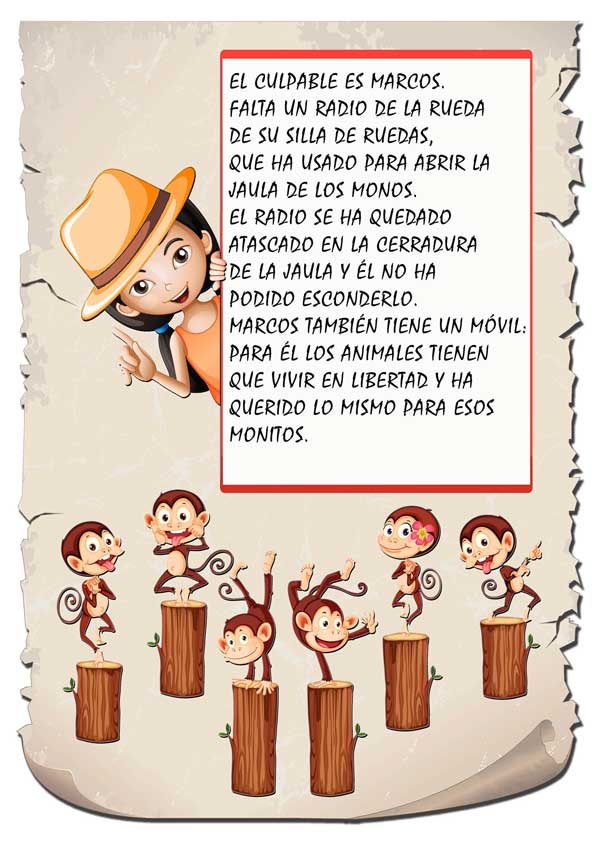 Mientras una clase de estudiantes visitaba el zoo de la ciudad decenas de monos aparecieron entre los alumnos. alguien los había liberado.Ayuda al detective a descubrir quién ha sido.